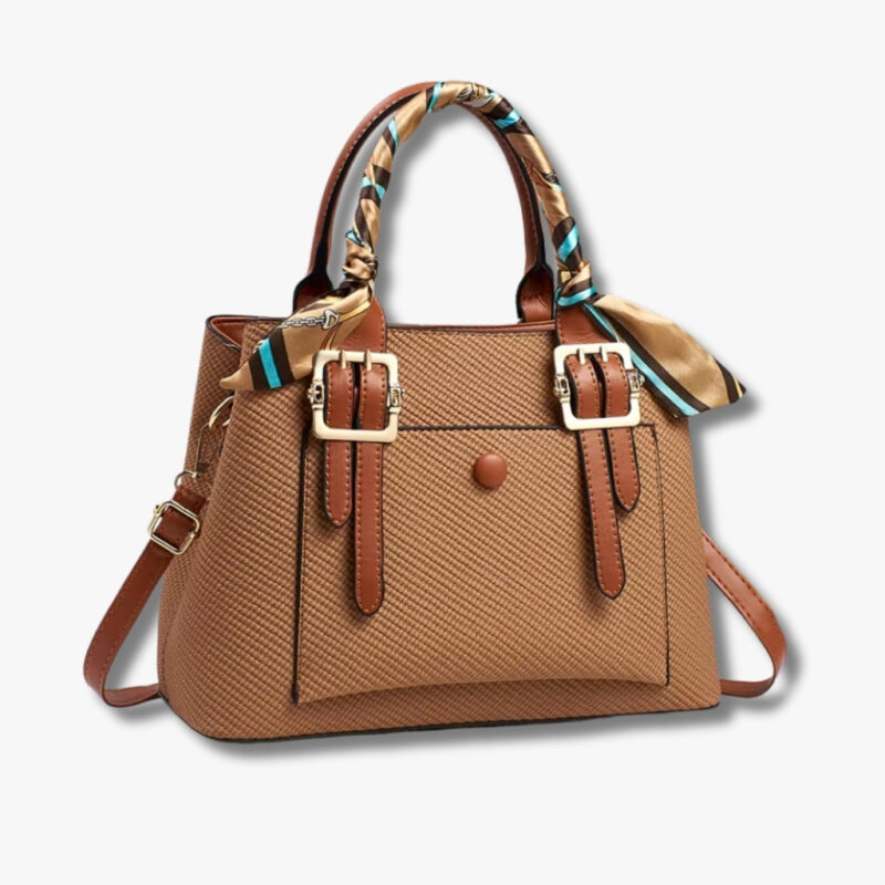 Elegant PU Leather Handbag with Scarf Handle & Buckle Design