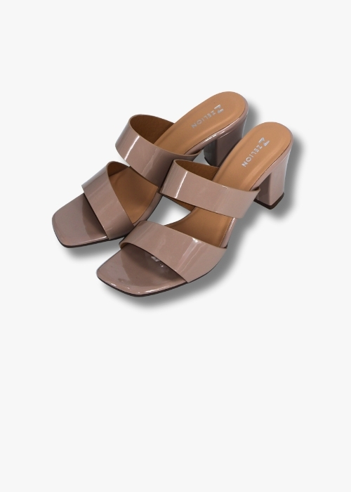 These ZELION branded sandals feature a distinct T-strap configuration combined with multiple horizontal bands for a modern, layered look. The
