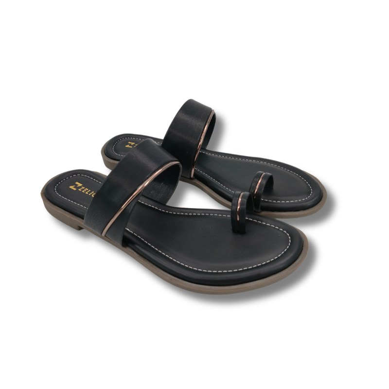 Zelion | Classic Toe-Ring Flat Sandals with Gold Accents