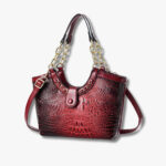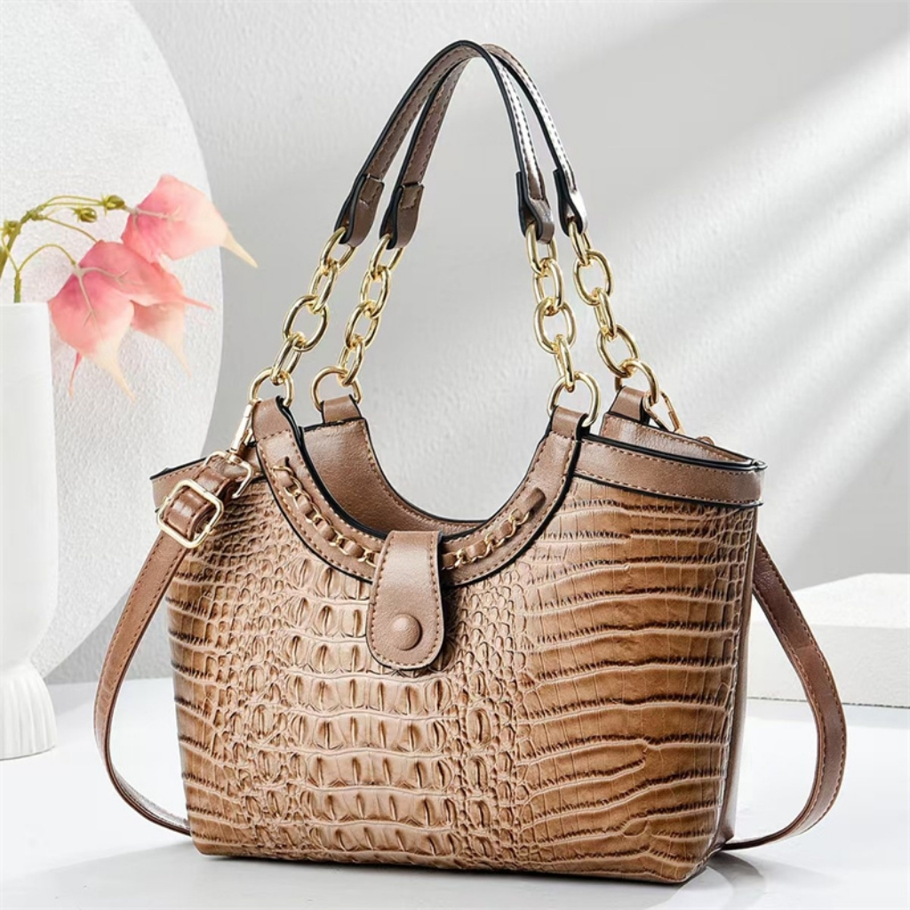 Crocodile Pattern PU Leather Shoulder & Handbag with Gold Chain Handles