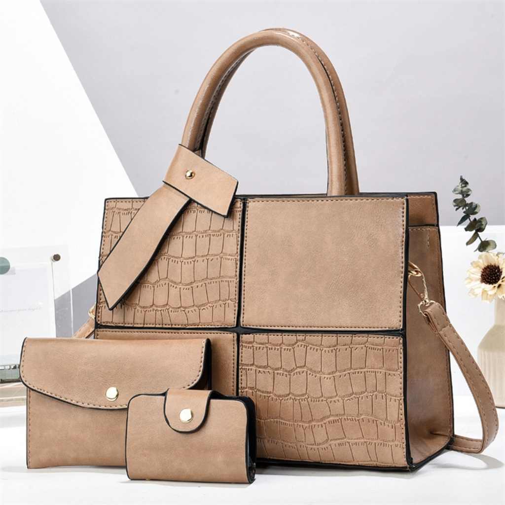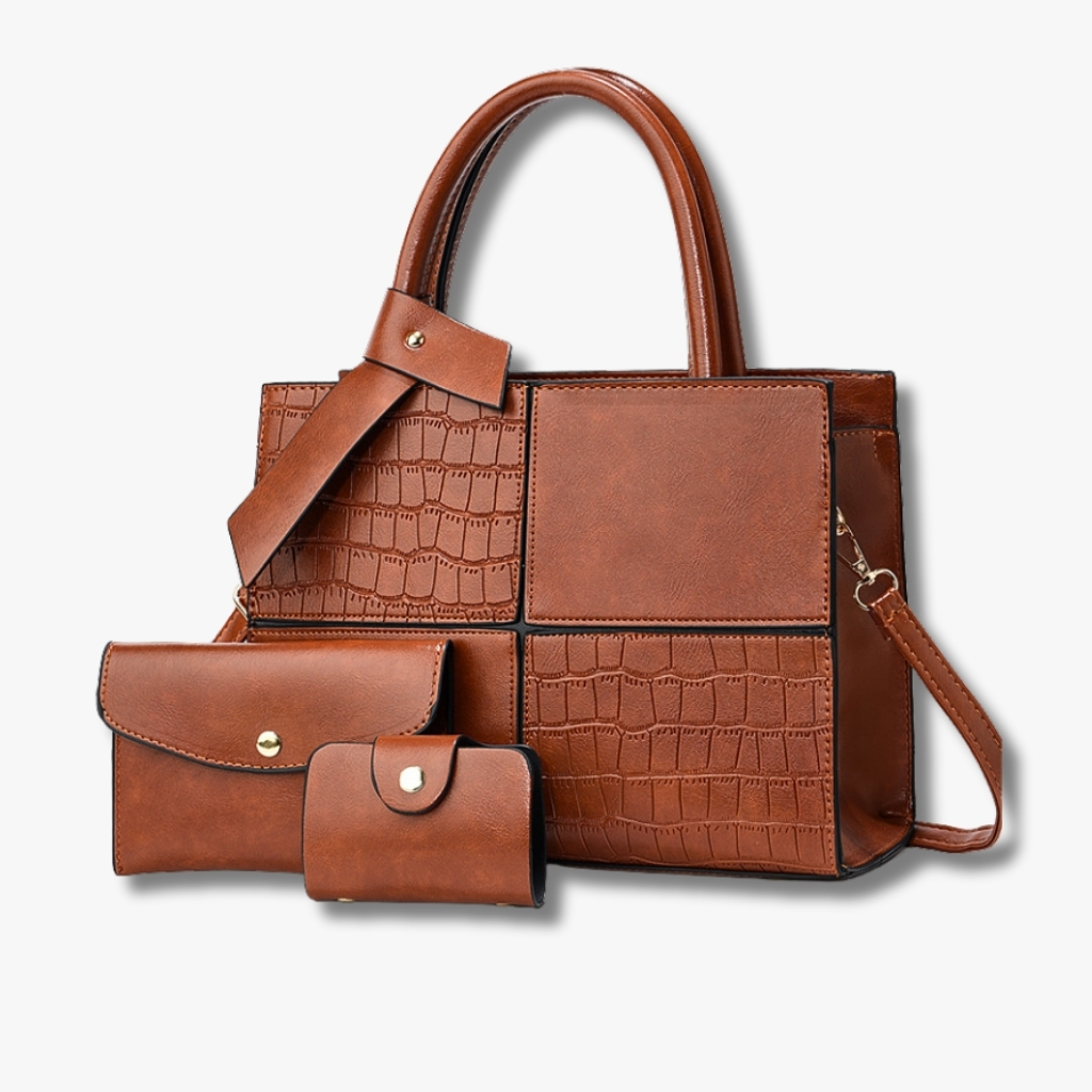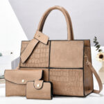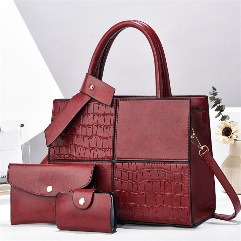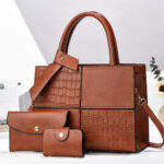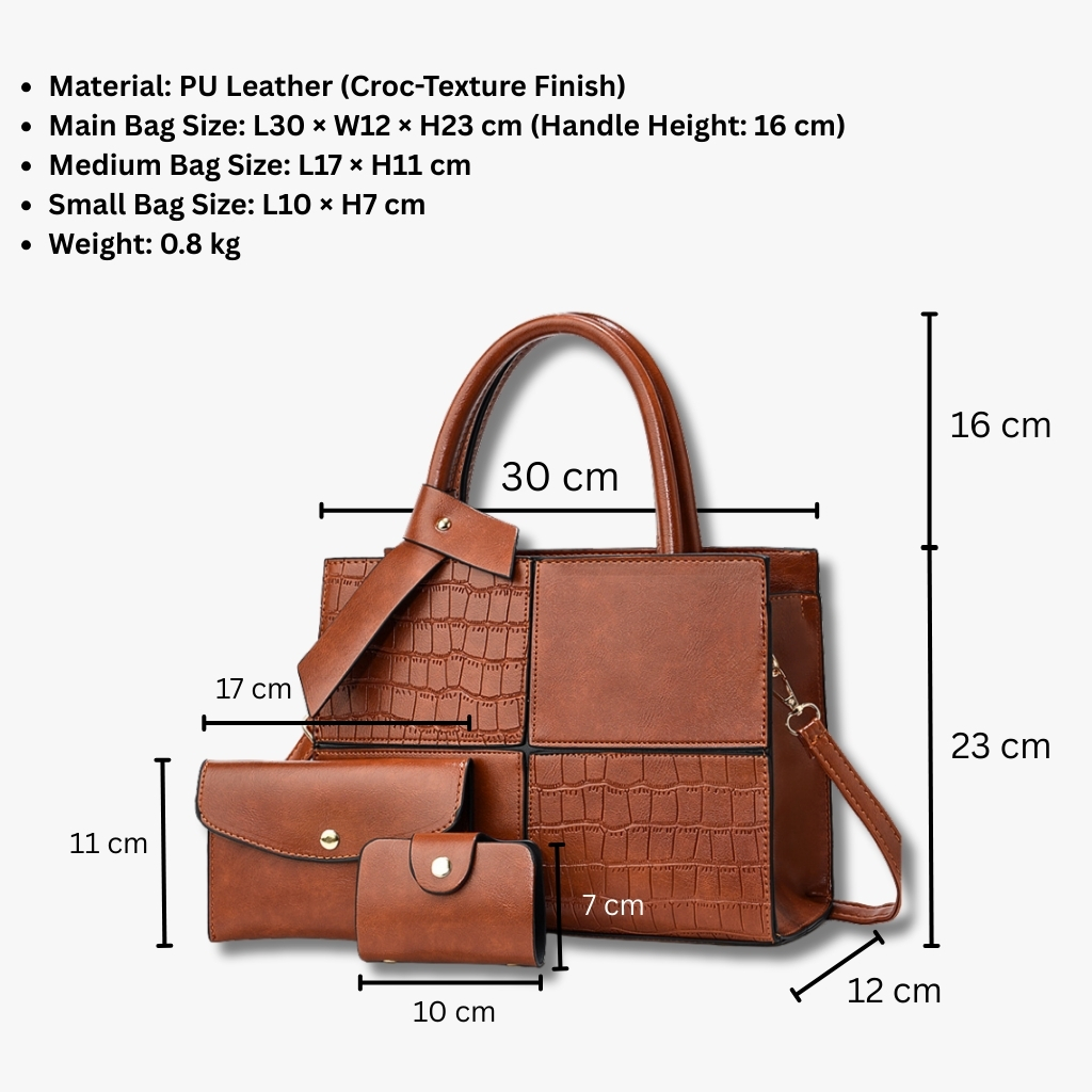 Luxury 3-in-1 Croc Texture PU Leather Handbag Set for Women