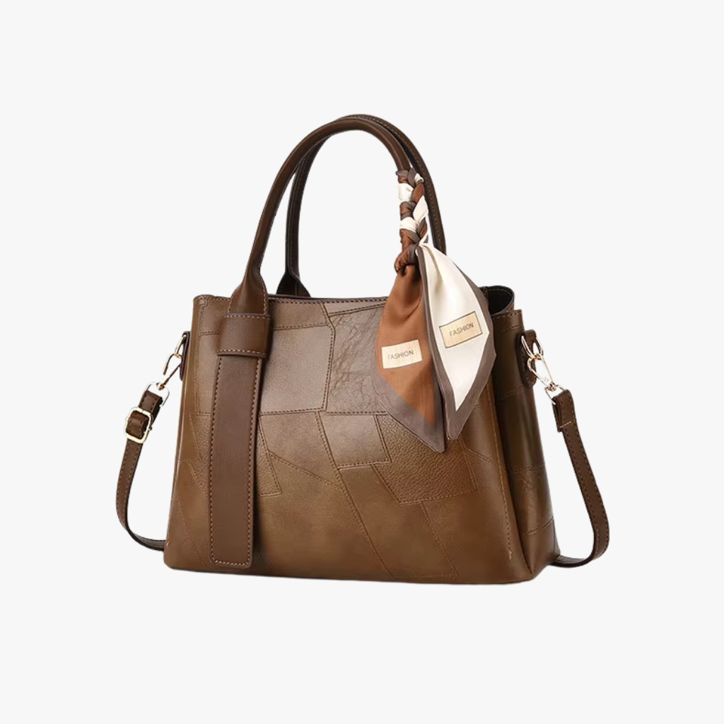 Artisan Patchwork Tote with Silk Scarf Accent – Versatile Shoulder Bag