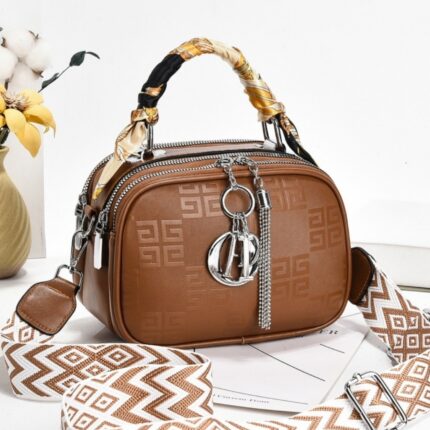and a detachable, adjustable long strap for comfortable shoulder or crossbody wear.