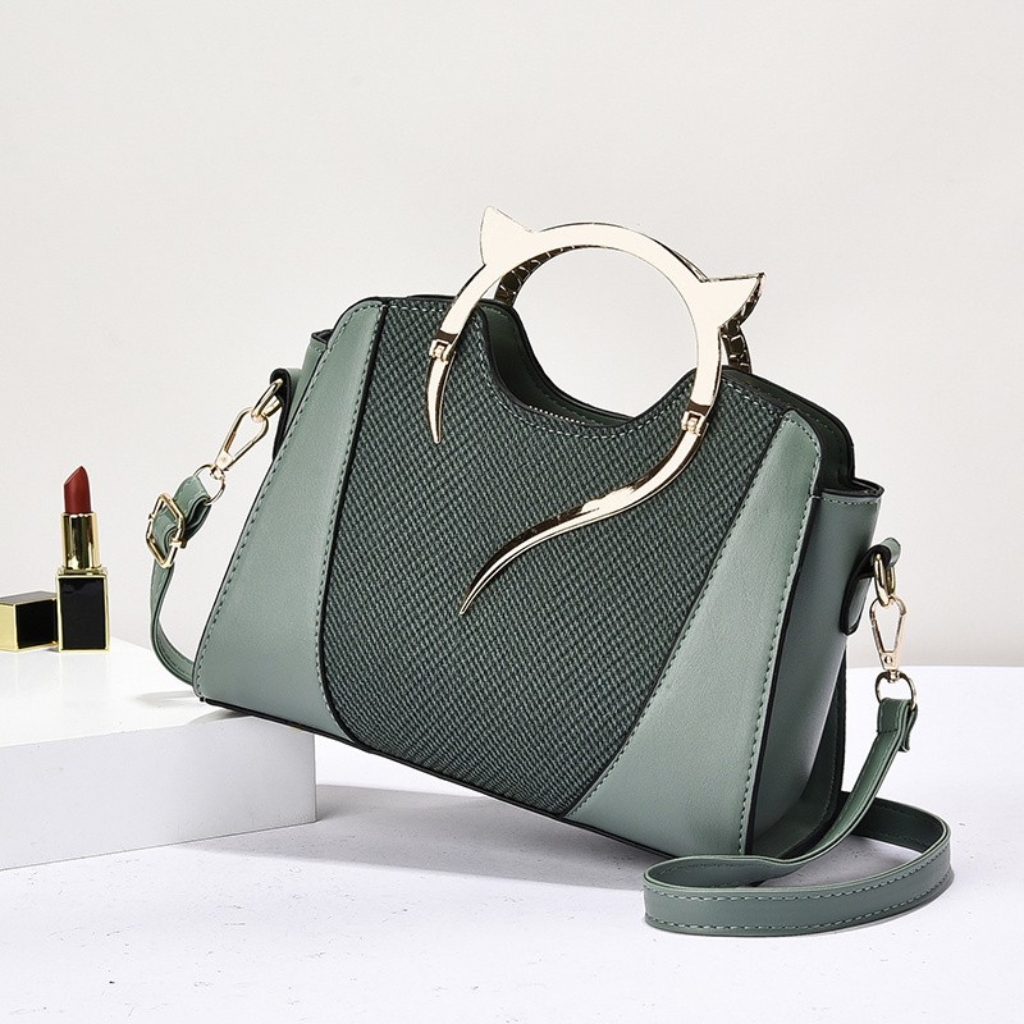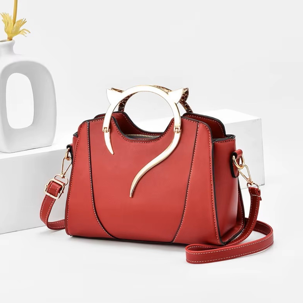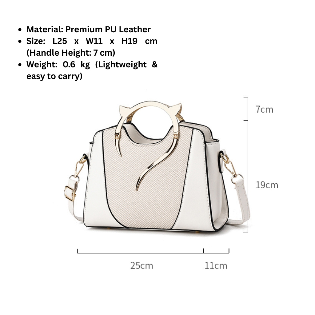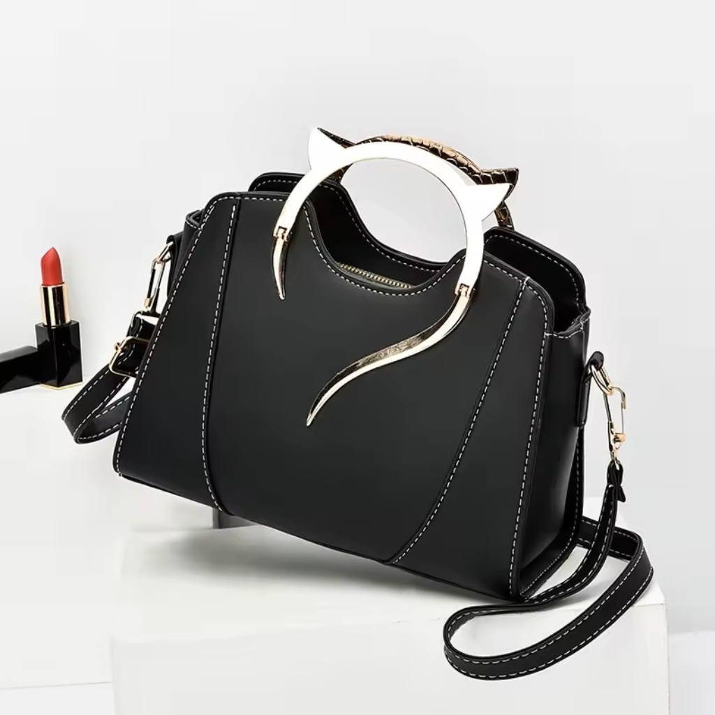 Elevate your everyday look with this chic PU Leather Handbag, designed with a unique golden cat ear handle that adds a playful yet sophisticated touch. Spacious, lightweight, and versatile, it’s perfect for casual outings, parties, or office use. Crafted from high-quality PU leather, this bag offers durability and a premium feel. The structured design with multiple compartments makes it easy to organize your essentials like phone, wallet, cosmetics, and more.