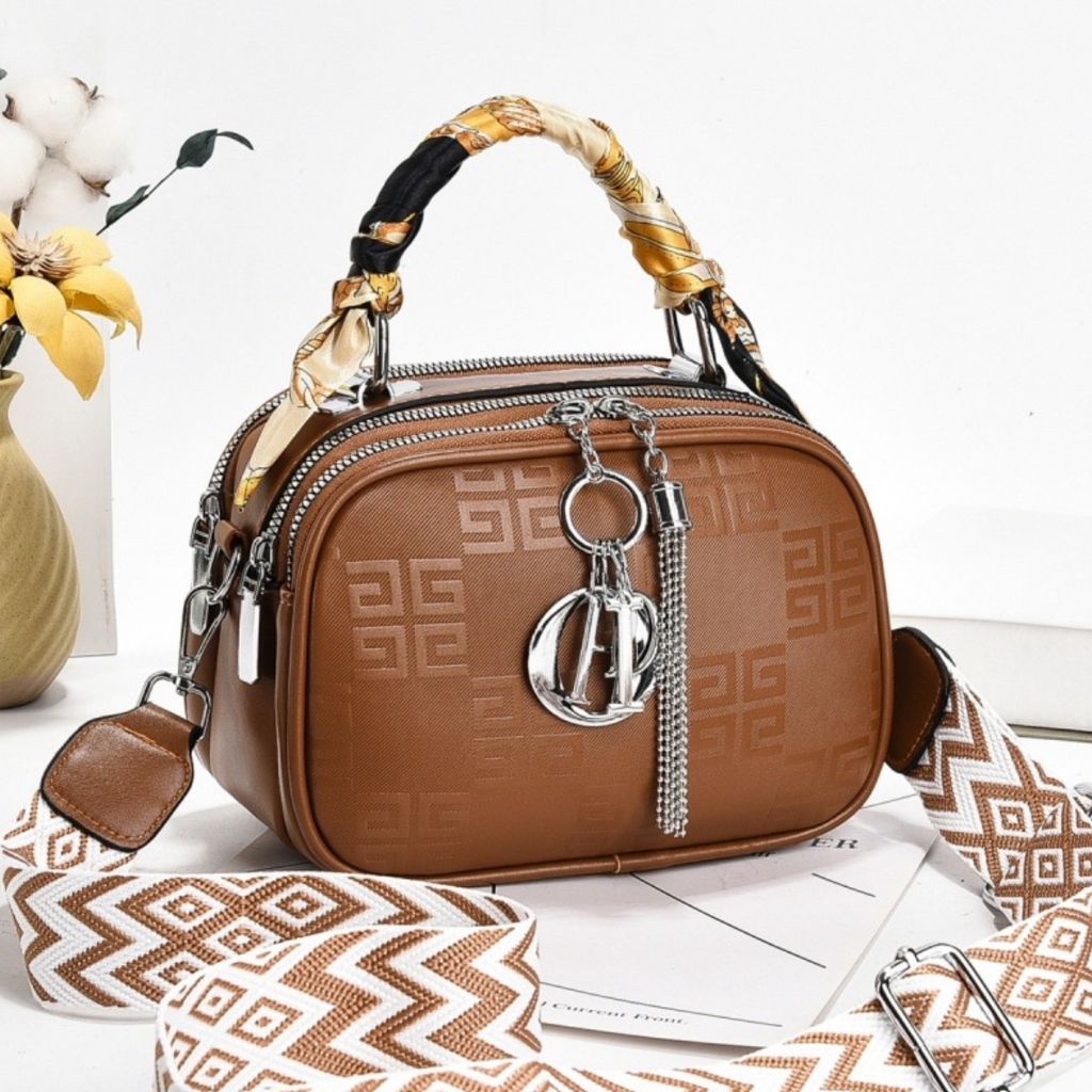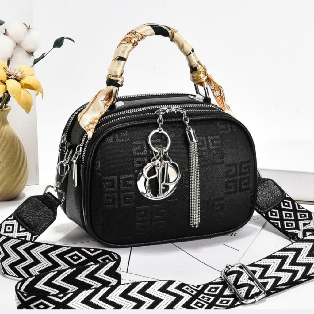 Elevate your style with this fashion-forward PU leather mini handbag, designed to be both compact and versatile. Featuring a scarf-wrapped handle and a detachable crossbody strap, this bag can be styled as a chic handbag or worn hands-free as a crossbody. Crafted from premium PU leather, it showcases a modern embossed pattern, metallic charm keychain, and dual-zipper compartments for secure and easy organization of your daily essentials. Perfect for carrying your phone, wallet, keys, and small makeup items, this lightweight handbag adds elegance to any outfit.