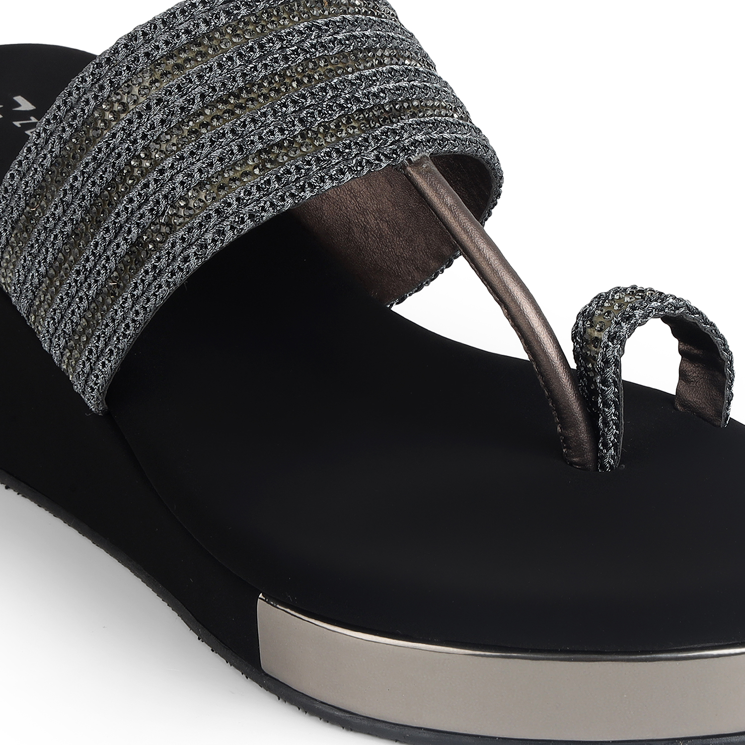 - Unique Silhouette: A stylish toe-loop design with a metallic-finish thong strap for a secure and elegant fit.