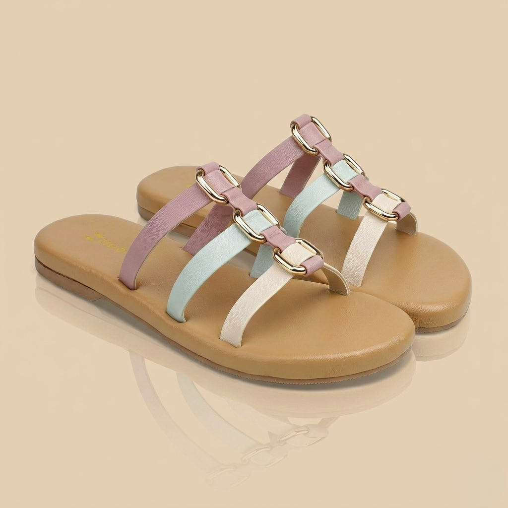 Refresh your footwear collection with the Zelion Multi-Strap Flat Sandals. These eye-catching flats feature a modern tri-color palette straps, creating a versatile look that transitions effortlessly from day to night. The centerpiece of the design is a sophisticated gold-tone link chain that elegantly connects the straps, adding a touch of luxury to a minimalist silhouette. Built for the modern woman, these sandals embody our signature “Comfort Crafted Design,” ensuring you stay stylish without sacrificing ease.