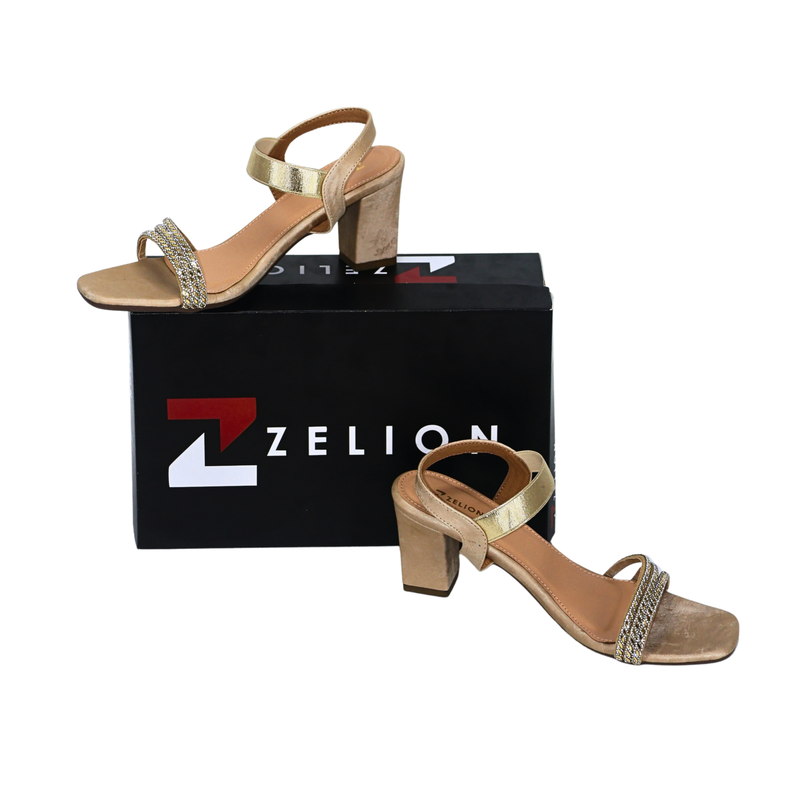 ZELION | Women’s Crystal | Strap Block Heel Sandals