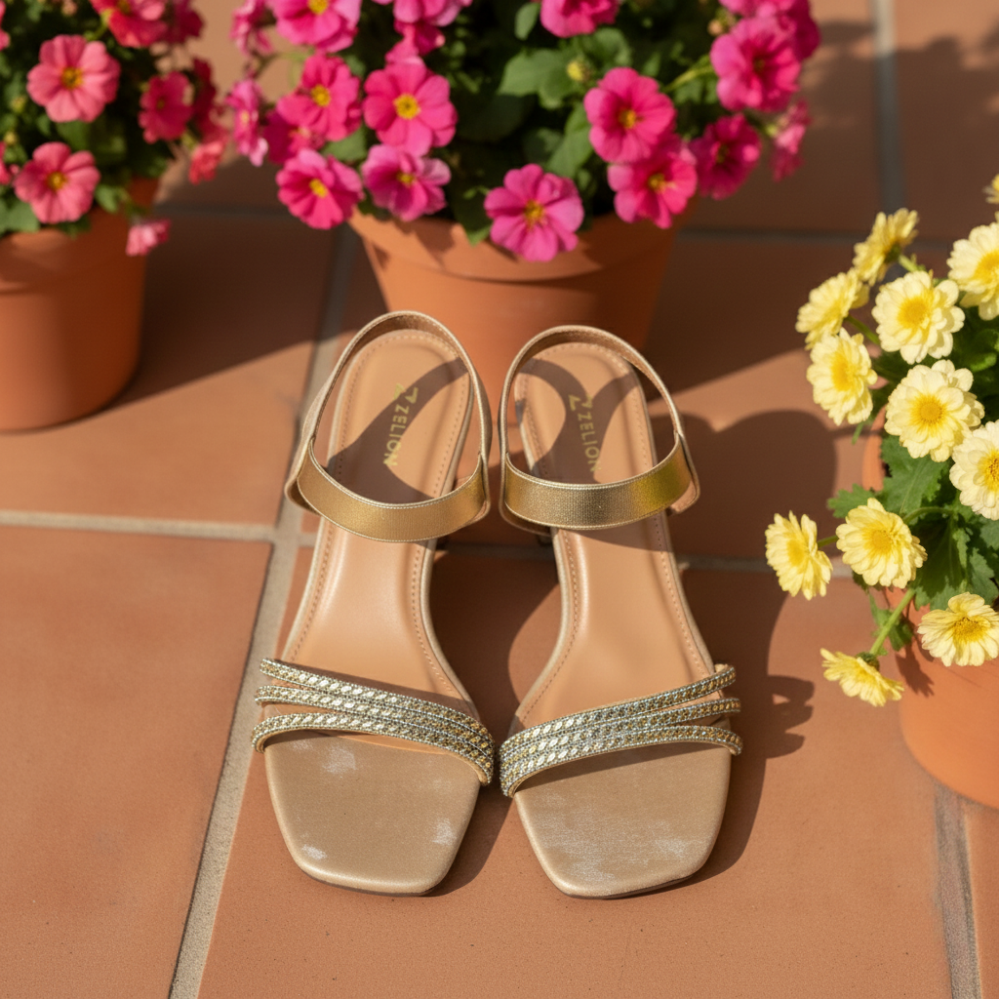 ease. Available in two premium tones: Classic Black with silver crystal accents for bold chic styling and Shimmer Gold with crystal-detailed straps for festive, ethnic, and party-ready outfits. Perfect for weddings, celebrations, evening looks, casual glam, and fashionable daily wear.