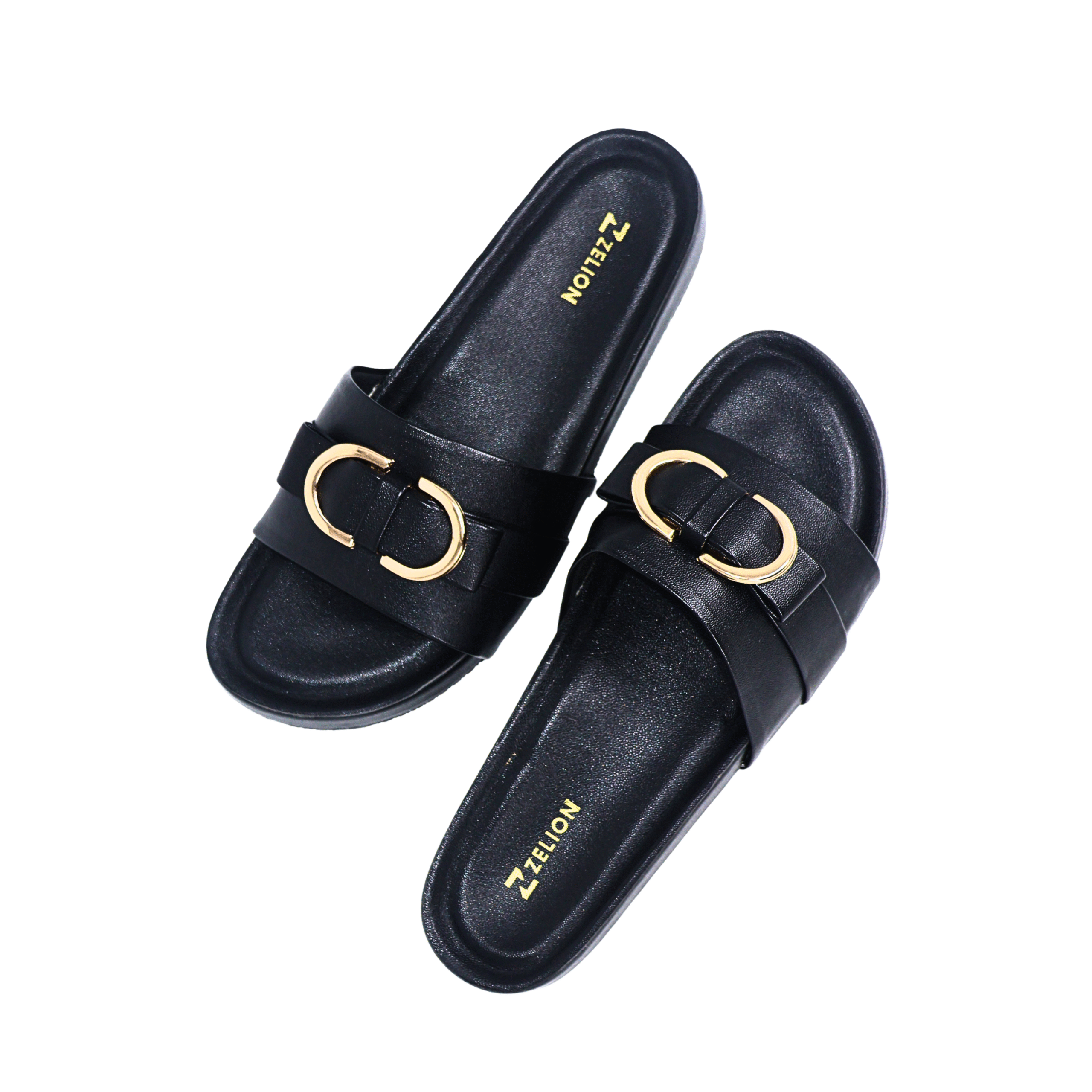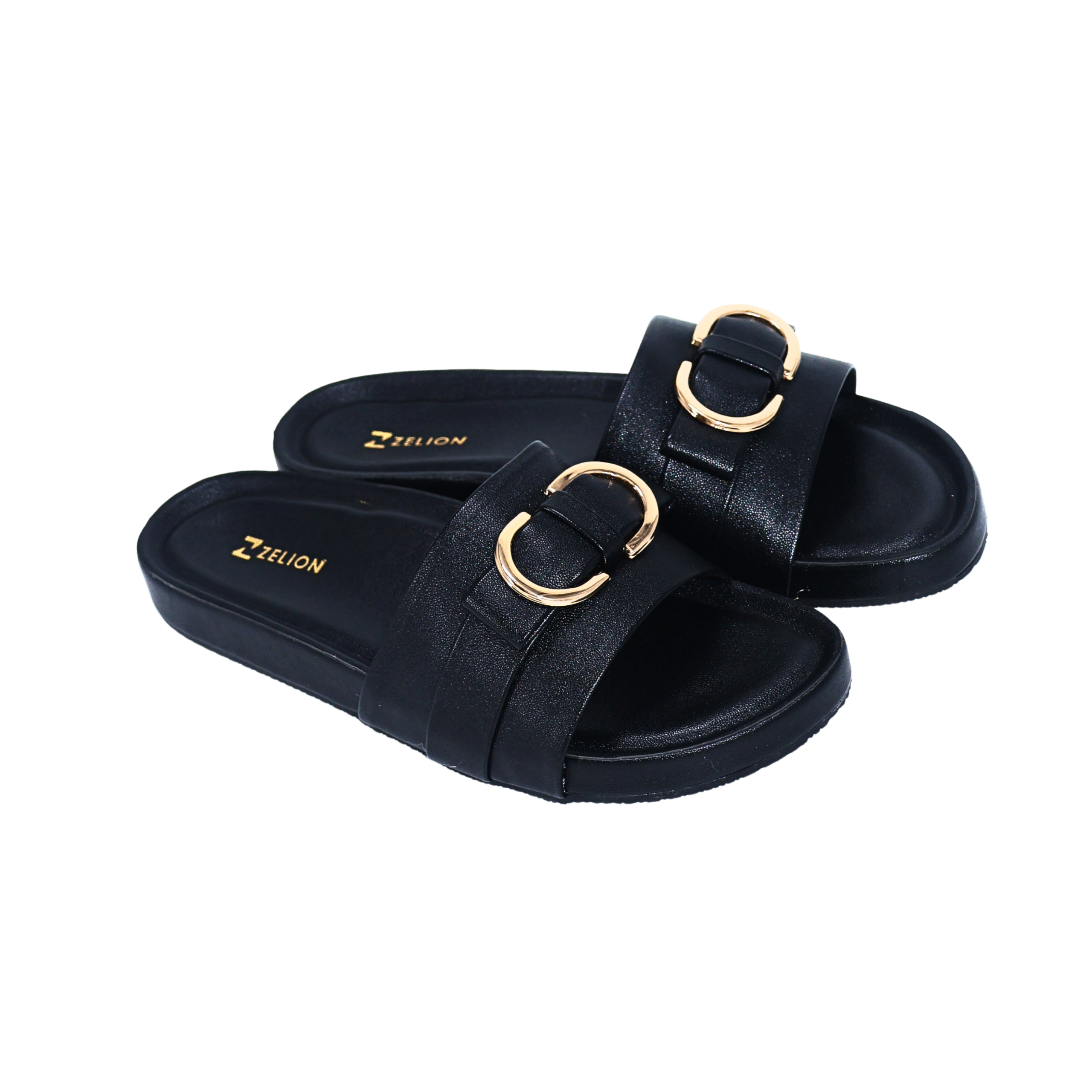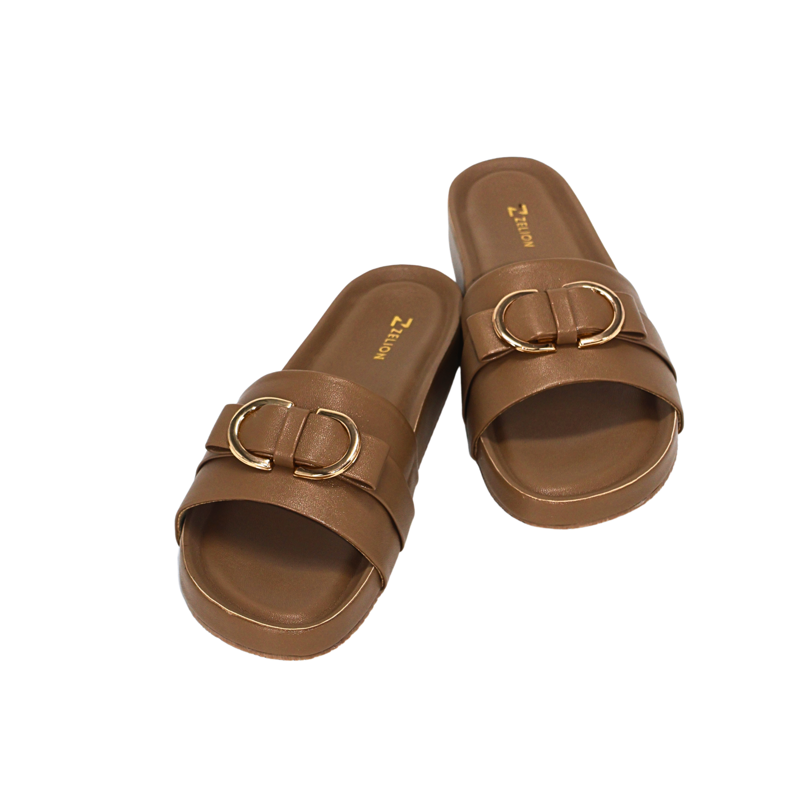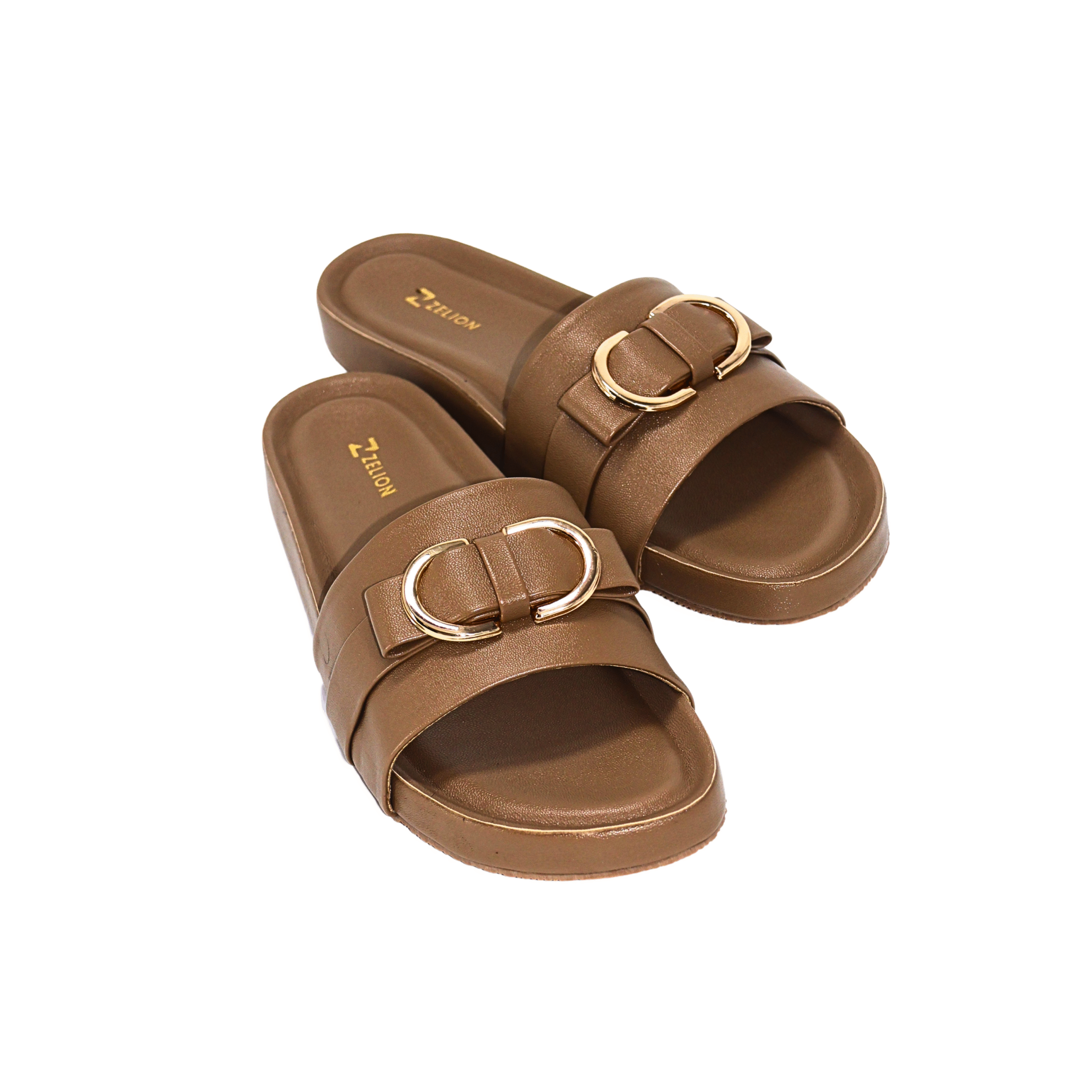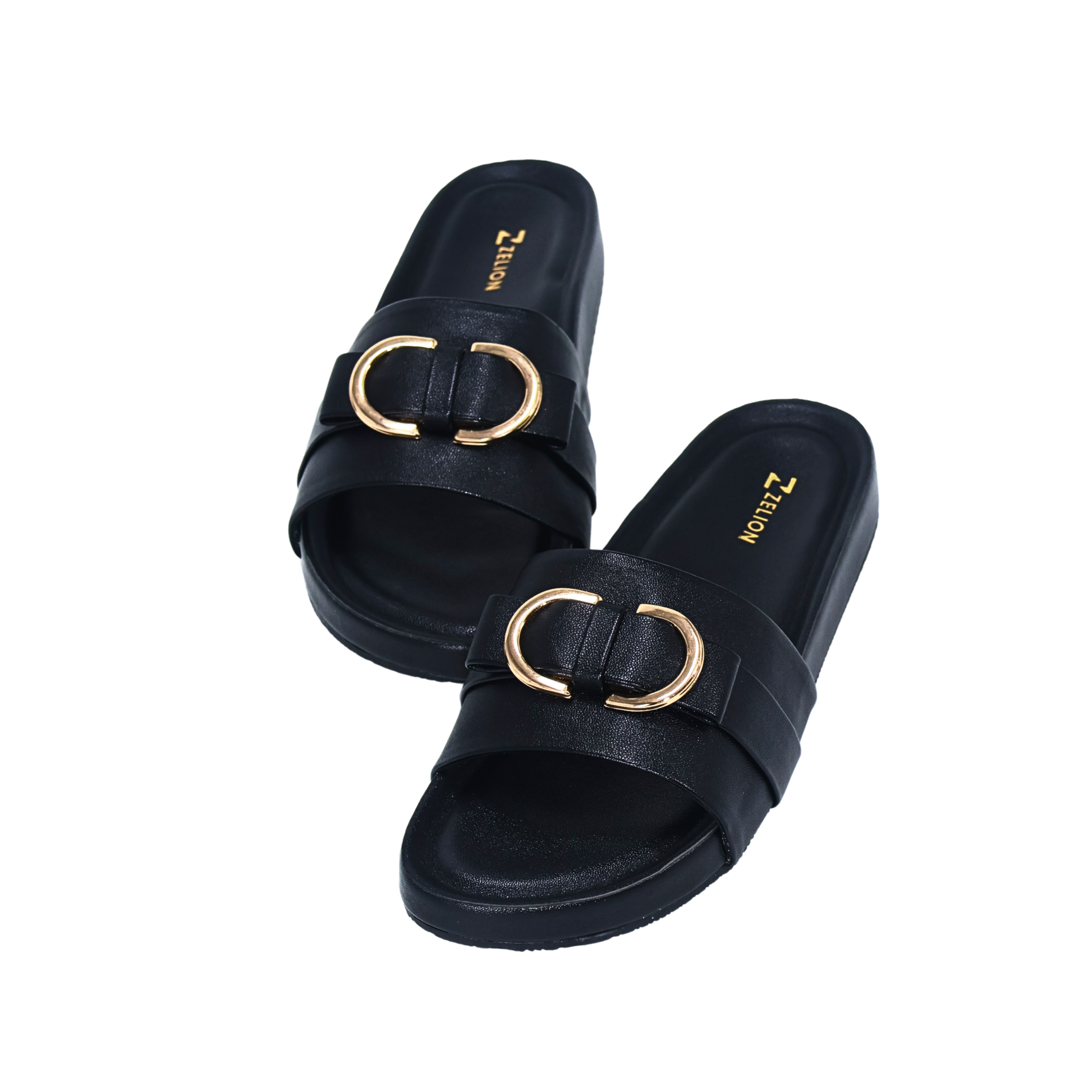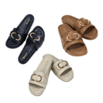 Zelion Women’s Premium Buckle Slide Sandals – Black, Brown & Cream