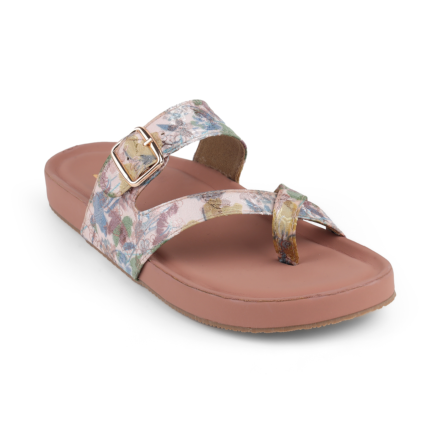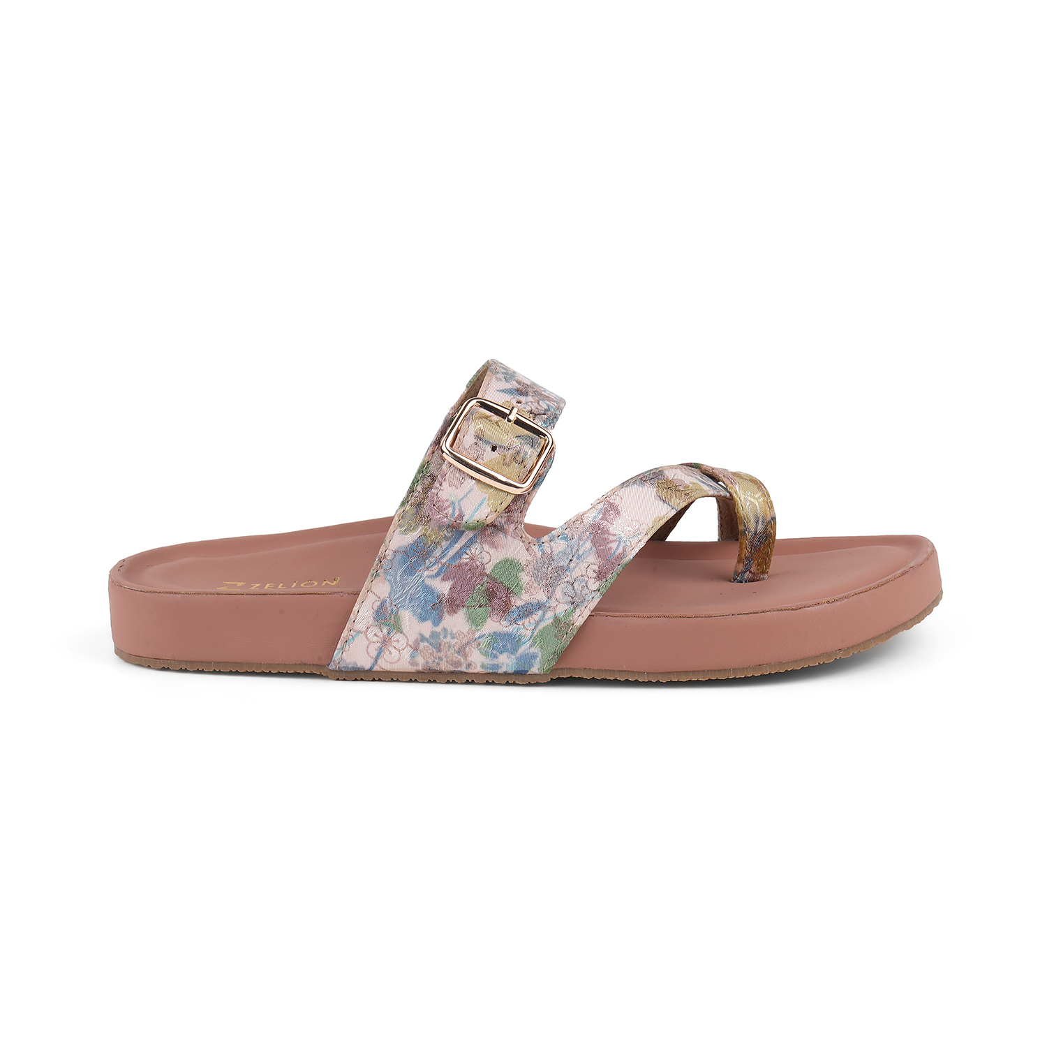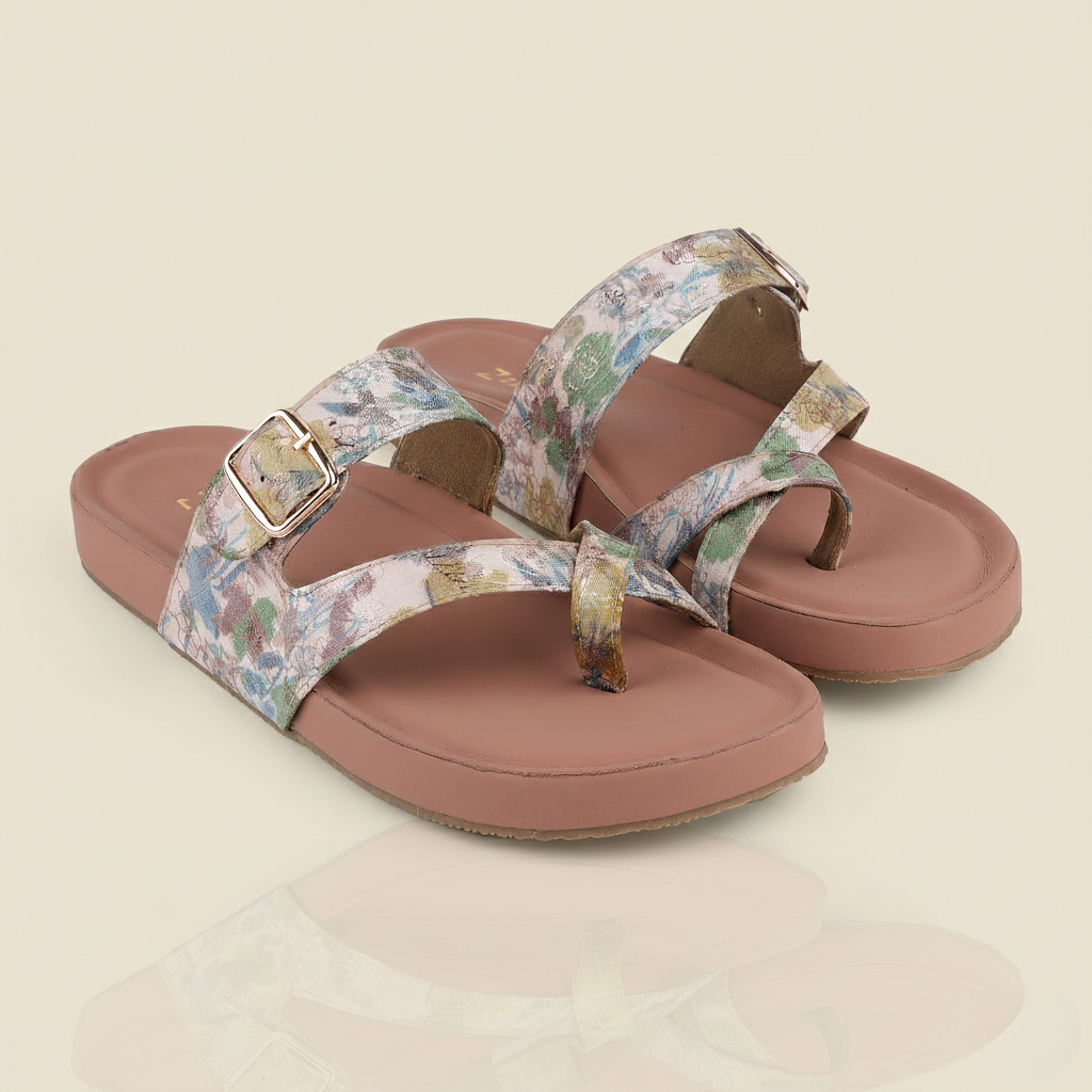 Zelion Women’s Printed Toe-Ring Flats with Adjustable Buckle – Floral & Black Variants